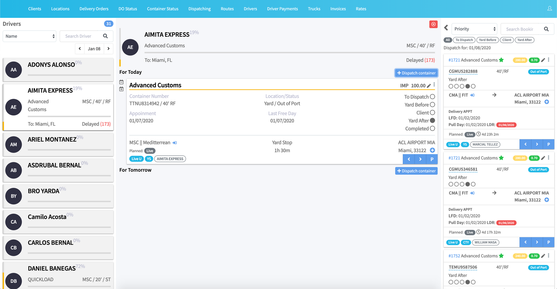 The concept was simple but radical: flip the entire workflow to start with the driver. A list on the left-most column showing all drivers, select one, and you'd see their details page where you could match and assign containers based on their capacity.