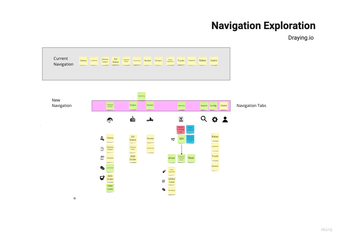 Everything going on in the office, as well as everything his truck drivers are running into on the road and at port is run through him and his bluetooth headset. The client had told me to be prepared with this user, because they could not get him to adopt the system in his workflow. The interviews with him were especially fruitful, because it became apparent, that there is a people side to running the logistics company; and by not taking it into account, his view became reasonable. Vast amounts of information came from him, goes to show that a step back can create a leap forward.
